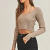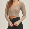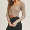 Long Sleeve Crop Sweater Top and Inner Bra Set – Mocha