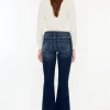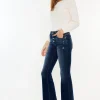 These petite mid-rise flare jeans in a medium wash combine a trendy silhouette with comfort. Made from stretchy denim, they feature an exposed button fly that adds a stylish detail. With a 10-inch leg opening, these jeans are perfect for showcasing your favorite footwear. Ideal for both casual and dressy looks, they effortlessly elevate any outfit.