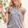Mineral Wash Flutter Sleeve Button Down Shirt – Dk Denim