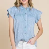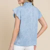 Mineral Wash Flutter Sleeve Button Down Shirt – Lt Denim