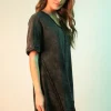 Mineral Washed Ribbed Knit Mini Dress – Black