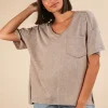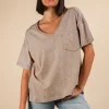 Mineral Washed V-Neck T-Shirt – Taupe