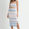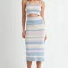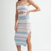 Multi Color Striped Front Cutout Knit Midi Dress – Lt Blue Multi