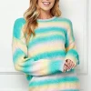 Ombre Drop Shoulder Knit Pullover Sweater – Mint Combo