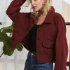 This cropped brown jacket features stylish pockets for a versatile and on-trend look. The cropped silhouette adds a modern touch to the classic jacket design, while the pockets provide added functionality. Perfect for layering over various outfits, this brown jacket with pockets is a chic and practical addition to your wardrobe for a fashionable and effortless ensemble.