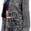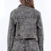 Overdyed Bleached Zip Up Cropped Jacket – Grey