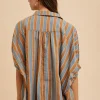 Oversized Drop Shoulder Striped Woven Shirt – Camel Multi