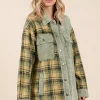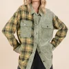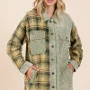 Plaid Button Down Drop Shoulder Jacket – Olive