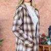 A plaid open front hooded shacket combines the best elements of both a shirt and a jacket. The plaid pattern adds a classic, stylish touch, while the open front and hood provide a relaxed, casual look. The shacket’s design offers a versatile layering option that bridges the gap between a shirt and a lightweight jacket, making it perfect for adding both warmth and style to your outfit.