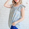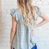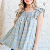 Plaid Print Smocked Detail Ruffle Baby Doll Top – Blue