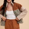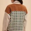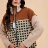 Plaid Zip Up Drop Shoulder Sherpa Jacket – Oatmeal/Camel
