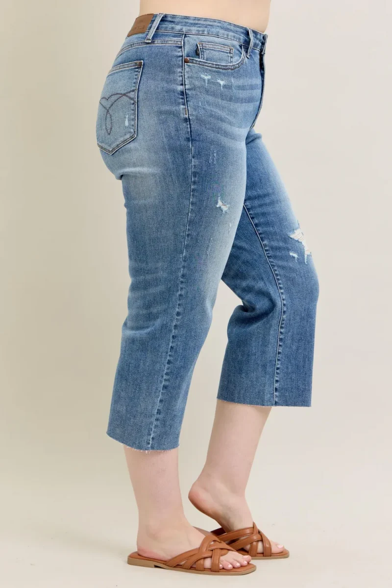Plus Size High Waist Back Destroy & Raw Cut Hem Crop Wide – Medium