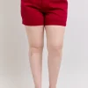 Plus Size High Waist Tummy Control Garment Dyed Heart Shaped Denim Shorts – Scarlet