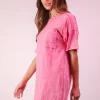Plus Size Mineral Washed Knit Shift Mini Dress – Pink