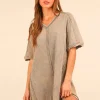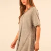 A mineral washed ribbed knit mini dress offers a trendy and stylish look. The ribbed knit fabric adds texture and comfort to the dress. The mineral wash treatment gives it a unique, slightly worn-in appearance. Perfect for a casual yet fashionable outfit.