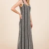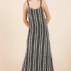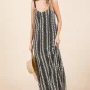 Plus Size Striped Scoop Neck Beaded Strap Maxi Cami Dress – Black