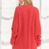 Popcorn Knit Open Front Long Sleeve Cardigan – Coral