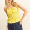 Poplin Smocked Waist Summery Cami Top – Yellow