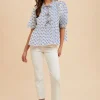 Printed Front Tie Closure Babydoll Blouse – Royal