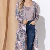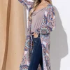 Printed Kimono Open Front Longline Cardigan – Aztec