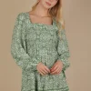 Printed Smocked Chest Boho Mini Dress – Green