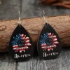 PU Leather Sunflower Teardrop Shape Earrings – Black