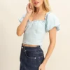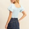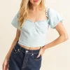 Puff Sleeve Sweetheart Neck Top – L.Blue