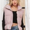 This puffer vest is designed with a cinched waist for a flattering and stylish silhouette. The cinched waist detail adds a feminine touch to the functional and cozy puffer design. Perfect for layering over sweaters or long sleeve tops, this puffer vest with a cinched waist is a versatile and trendy addition to your cold-weather wardrobe.