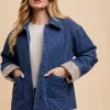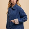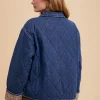 Quilted Printed Lining Snap Down Denim Jacket – Dark Blue