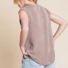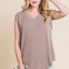 The rib knit V-neck tank is a stylish and versatile piece for your wardrobe. The ribbed texture adds depth and interest to the tank, while the V-neckline offers a flattering and chic look. Perfect for layering or wearing on its own, this tank can be dressed up or down for various occasions. Pair it with jeans, shorts, or a skirt for a classic and timeless outfit.
