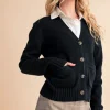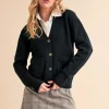 Ribbed Hem Button Down V-Neck Cardigan – Black
