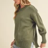 Ribbed Hem Side Slit Round Neck Sweater – Olive