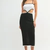 Ribbed Knit Color Block Cutout Midi Dress – Black