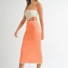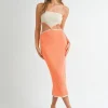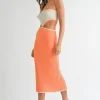 Ribbed Knit Color Block Cutout Midi Dress – Orange