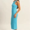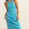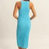 Round Neck Bodycon Ribbed Knit Dress – Blue