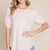Round Neck Puff Sleeve T-Shirt – Light Pink