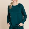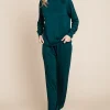 Round Neck Raglan Sleeve Top and Drawstring Pants Lounge Set – Hunter Green