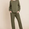Round Neck Raglan Sleeve Top and Pants Lounge Set – Olive
