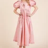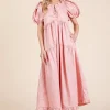 Ruffle Trim Puff Sleeve Tiered Babydoll Midi Dress – Blush Pink
