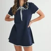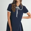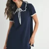 Ruffle Trimmed Collar Fine Knit Mini Dress – Navy