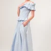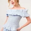 Ruffled All-Over Smocked Off Shoulder Top – Blue