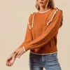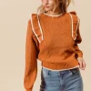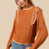 Ruffled Round Neck Cable Knit Top – Rust/Ivory