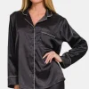 Satin Long Sleeve Shirt and Pants Pajama Set – Black