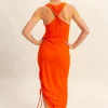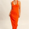 Scoop Neck Side Tie Detail Midi Dress – Tomato