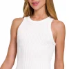 Seamless Ribbed Crop Tank – White