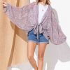 Sheer Front Tie Knot Oversized Kimono Wrap Cover Up – Multi