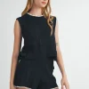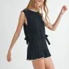 Side Tie Detail Knit Vest and Shorts Set – Black