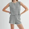Side Tie Detail Knit Vest and Shorts Set – Gray