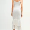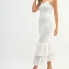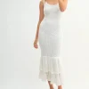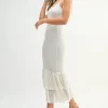 Sleeveless Shoulder Tie Rose Knit Midi Dress – Off White