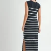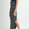 Sleeveless Stripe Sweater Maxi Side Slit Dress – Navy